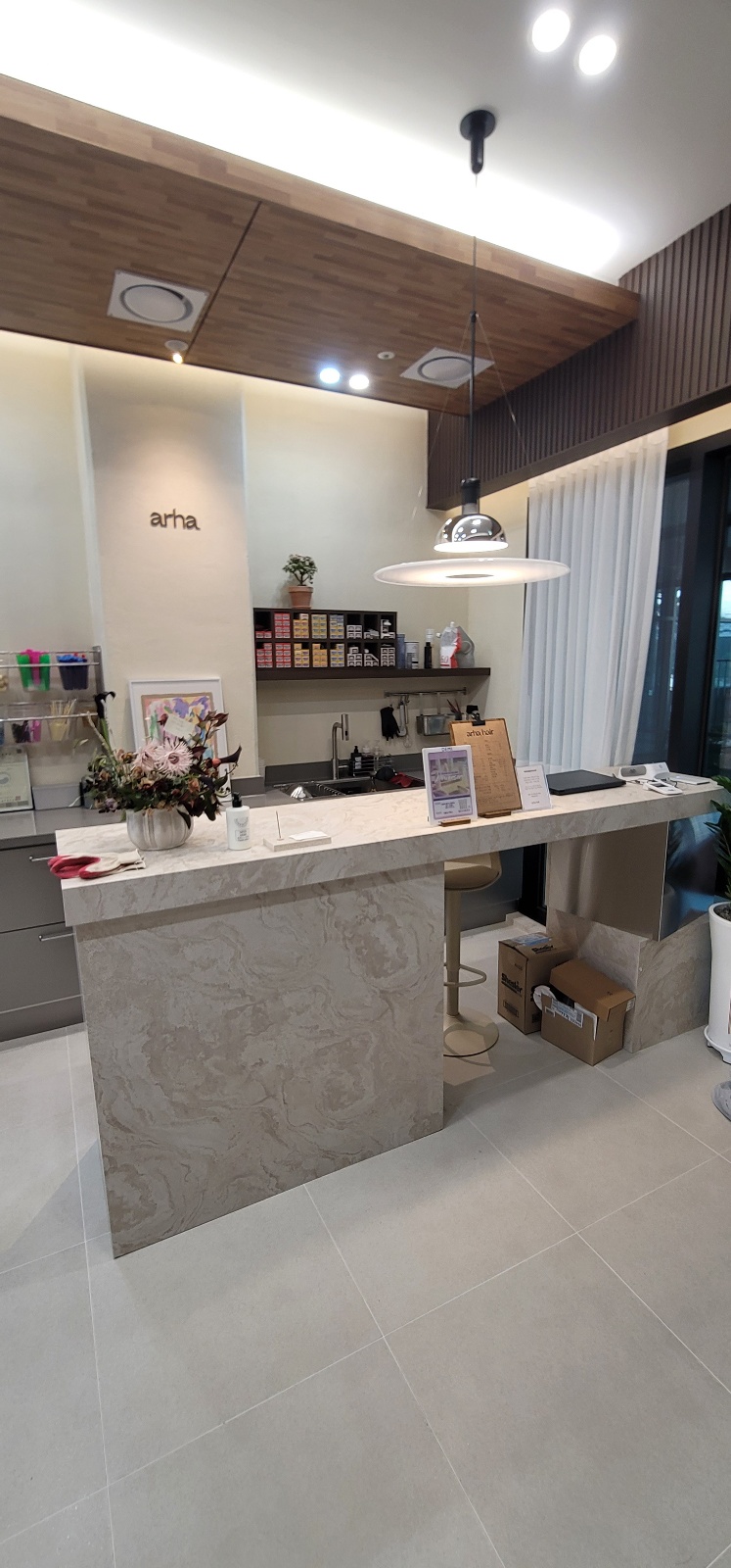 경기도 하남시 서하남 인터체인지 근처 소재한 감일 푸르지오 마크베르 아파트 상가안의 헤어숍의 인테리어를 소개해 드리겠습니다.