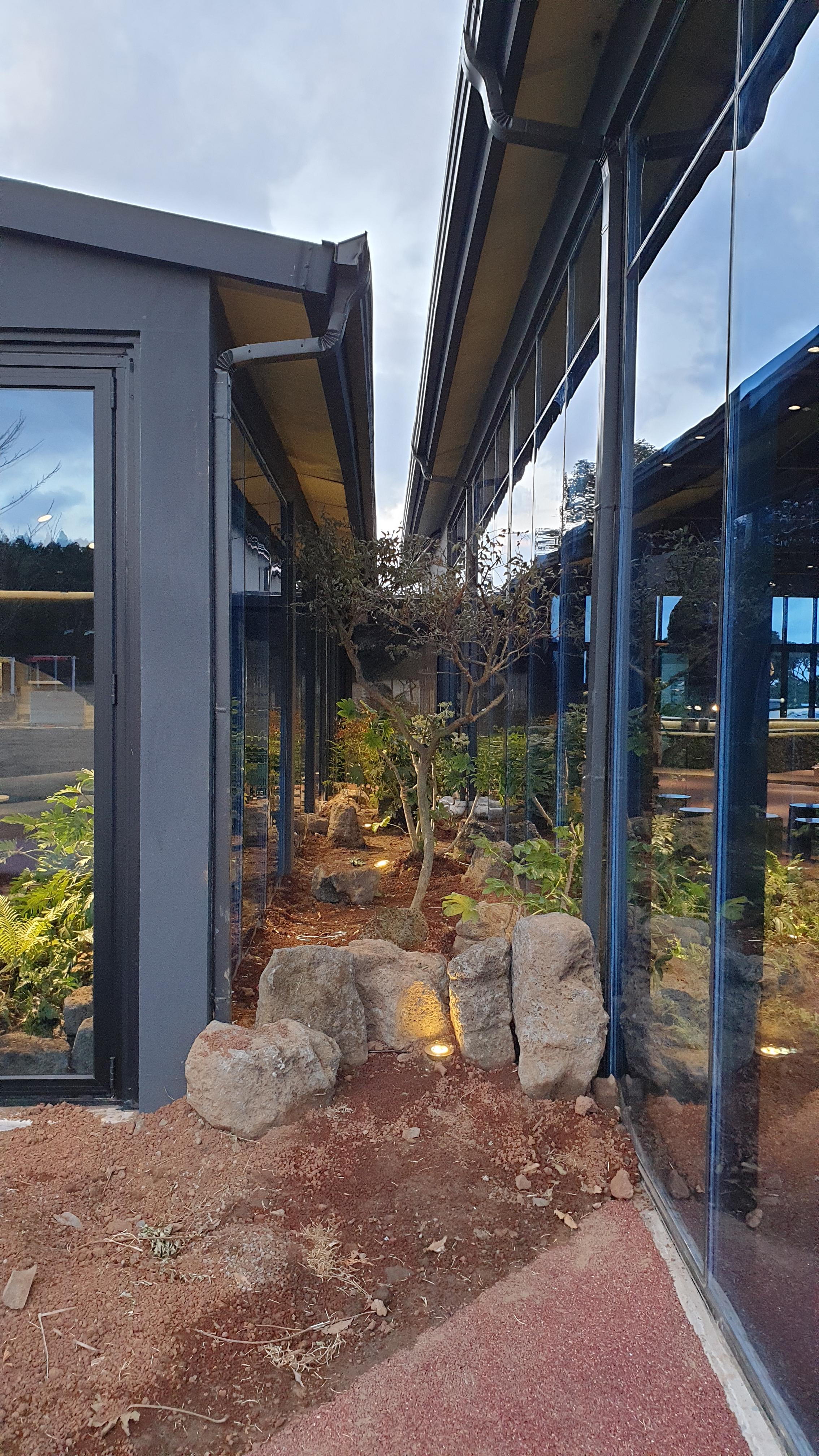 철골트러스를 손대지 않고 최대한 노출 시키는 방향으로 진행하여 주변과 어울어지짐이 부족하지 않게 했습니다. 자연친화적 느낌을 살리는 방향으로 작업 진행 하였습니다.