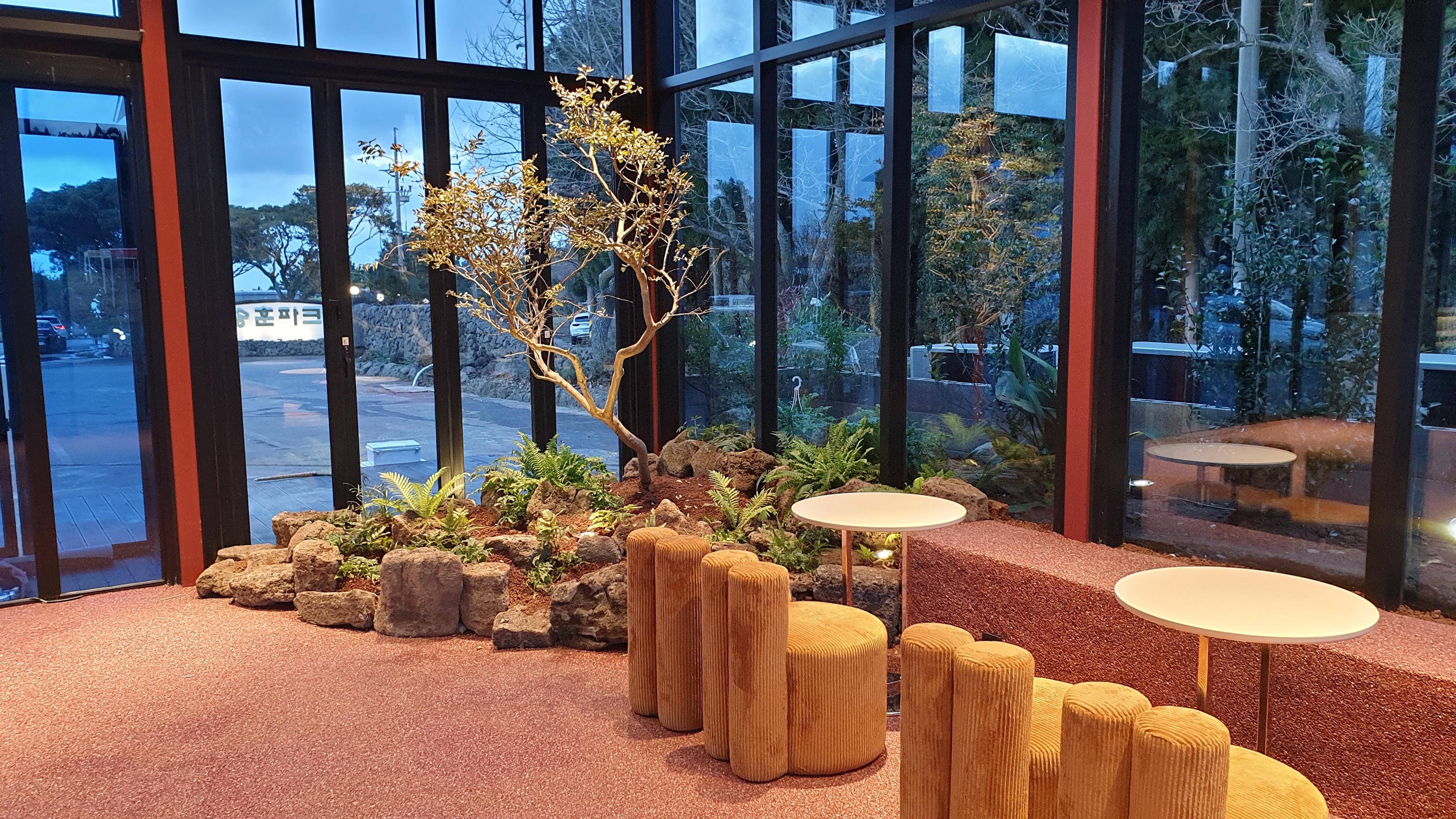 바닥은 네츄럴한 느낌으로 콩자갈로 선택하여 타 매장과는 차별화 하였습니다.